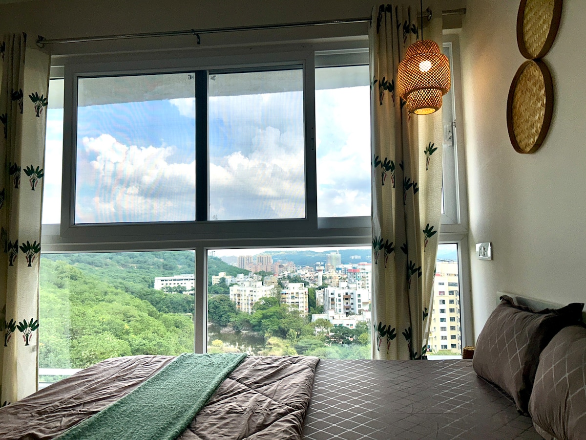 A Quiet, Cozy Studio Apartment on the 15th Floor 🌿 3.5 km from Balewadi High Street | 🚗 700m from Mumbai-Bangalore Highway Wake up to the soothing sounds of nature—the call of peacocks, the rustling of leaves, and breathtaking views of Baner Hills, Pashan Lake, and the city lights, all from the comfort of your bed.