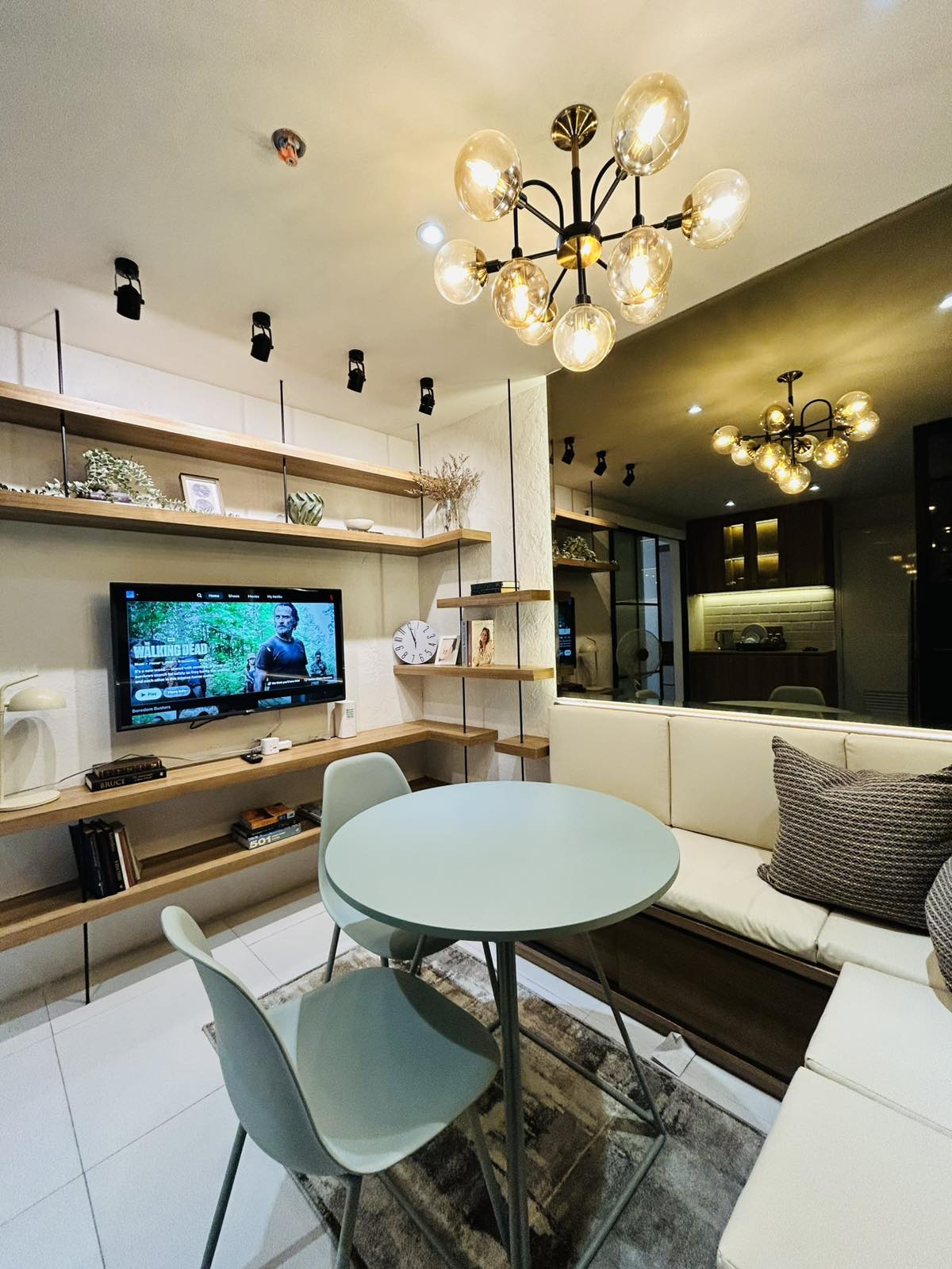 Welcome to CIRQ Studio at Eton Emerald Lofts. This brand-new 40sqm loft type condo unit is situated at the heart of Ortigas Business District and is just a 4-min walk to Robinsons Galleria. The main theme and inspiration of this condo is Japandi Modern hotel-luxe styled with midcentury modern furniture and decors. Neutral tones with a combination of dark wooden textures with accents of titanium blue and gold fixtures making every corner of the condo Insta-gram-ready. :)