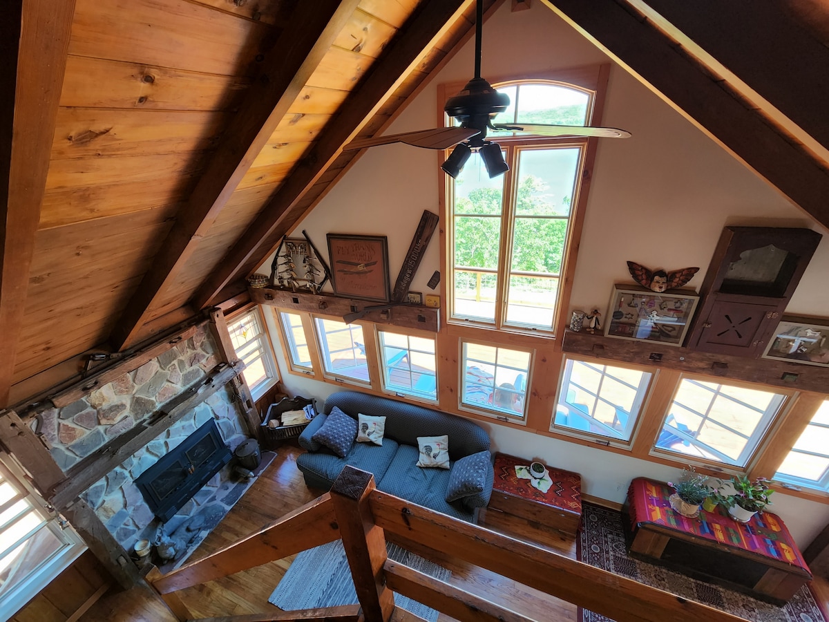Quiet Private lakehouse set down on 2 rare rock bluffs giving you a majestic water view just like it was in 1939. Extra Lg Great room w a huge fireplace. The great kitchen surrounds the chef. Big hot tub, Rowboat with canopy, 8 kayaks, Treehouse, Neverending Lakeside windows, docks, 1 hr from Manhattan w Eagles & vast wildlife like you were in the deep woods. Clean, unspoiled lake full of fish. Never had gas motors. A Mountaintop lake above the ski area. Stargazing! Perfect for get-togethers.