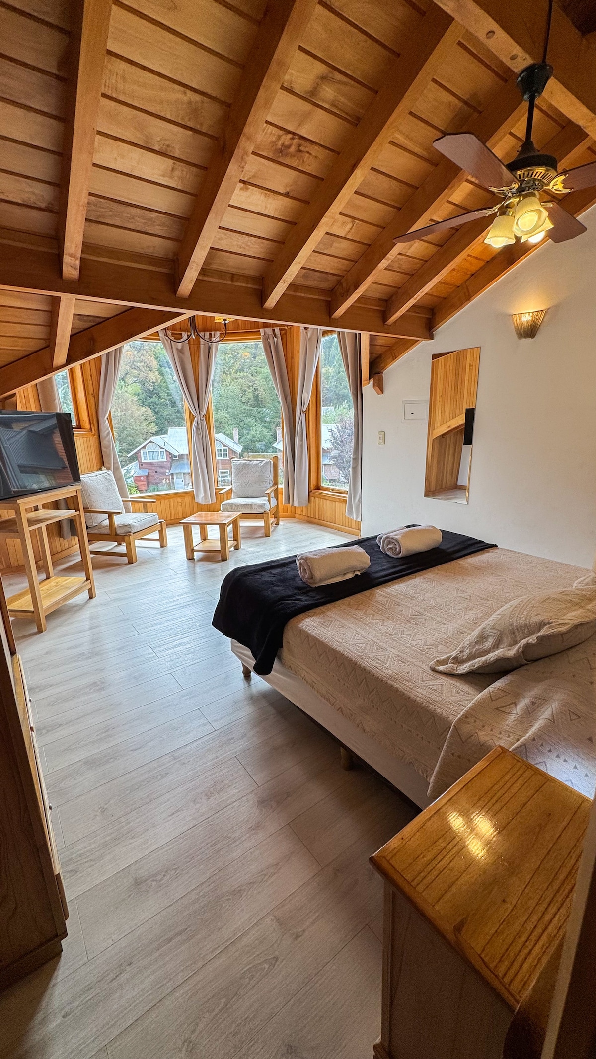 Enjoy Bariloche from above in this bright studio located in the center, with a privileged view of the lake and the mountains. Ideal for 2 adults and a child (maximum capacity 3 people), the space combines comfort, strategic location and an unforgettable postcard from the window.