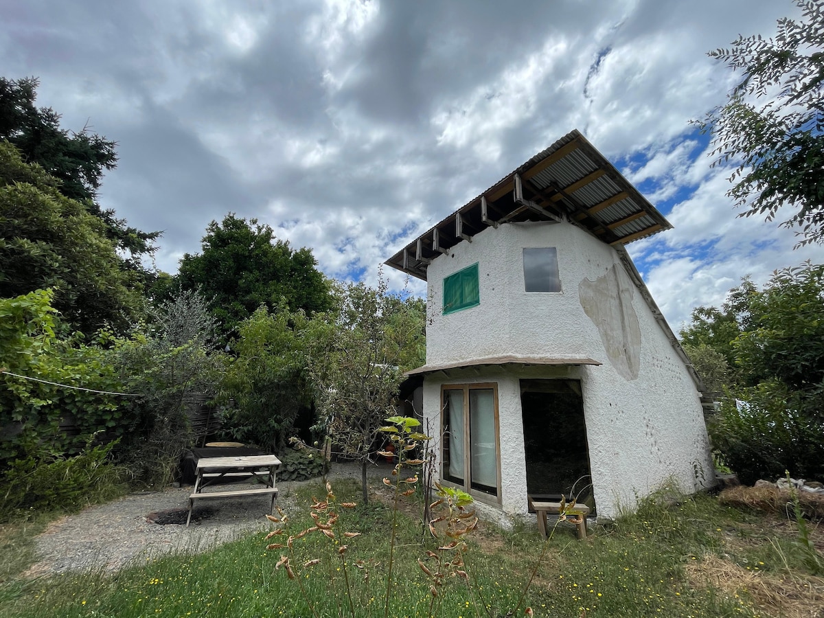Cozy mud house in Cerro Amigo, a few meters from downtown and with the tranquility of the mountain, with a panoramic view of the valley and the mountain range. It is located on a property of more than one hectare shared with other cabins, in which each has ample space for privacy and rest.