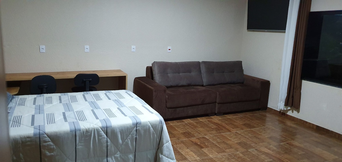 Apto mobiliado para seu bem estar e conforto . Apto com 1 quarto , cama casal e banheiro. Living aberto com mesa para 4 pessoas, cozinha , sala com 1 sofá cama retrátil. A duas quadras do hospital policlínica e 3 quadras do hospital Tereza Mussi . Garagem para carros pequenos e médios. Nâo cabe Rampage.