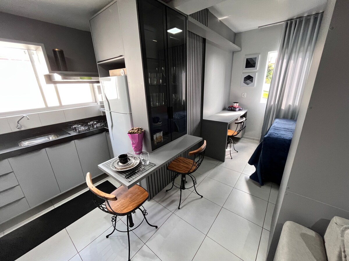 The BEAUTIFUL apartment was prepared and decorated for rentals on AIRBNB, so you can feel at home when you're away from yours! In downtown Pato Branco The space was designed in a compact way so that you would have all your needs met. Living room with 45-inch SMART TV, new and super comfortable double sofa bed. 1 suite with a new double bed, white sheets and a touch of silk. Bathroom all revitalized with burnt cement on the walls. Washing machine. Come and see and stay!