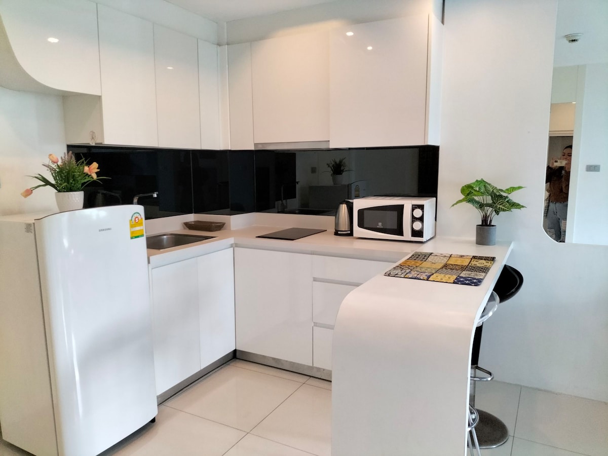 Nice choice to relax 👍 Compact condo with 26 square meters ,swimming pool view ,peaceful holiday 1 bedroom 1 bathroom 1 balcony ❄️ 1 AC 📺 2 Smart TVs 🎽 1 washing machine 🍳 2 Stoves 🍟 1 Microwave 🍽️ Fullly tableware 🧊 1 Fridge 💤 1.5M Queen bed 👨🏻✈️ 24 hours security Book Now 📲