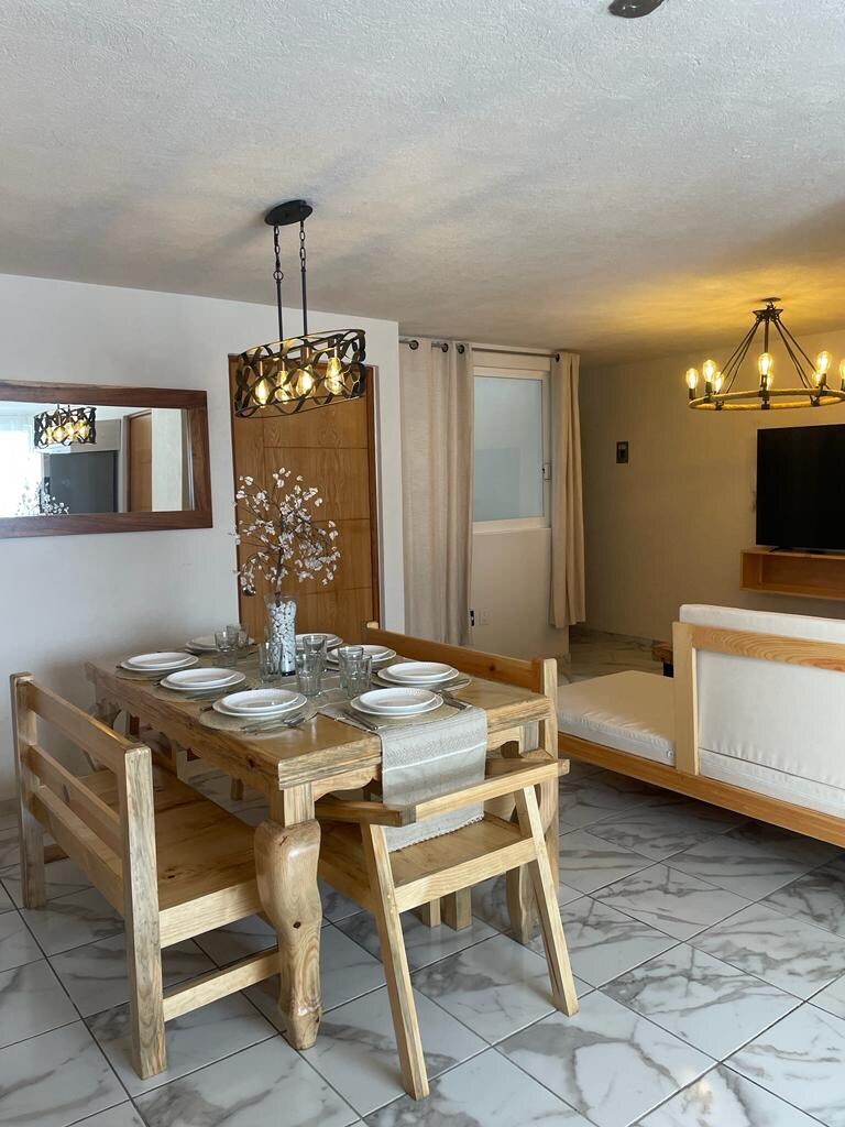 Welcome to Pátzcuaro, our apartment is designed for families, couples and groups of friends looking for a comfortable, quiet and safe place, with a beautiful view and excellent location. It has room for up to 5 guests, good lighting, and a warm atmosphere to make you feel at home. It is perfect for resting after taking a tour of the tourist spots of Pátzcuaro, it is also ideal for business trips.