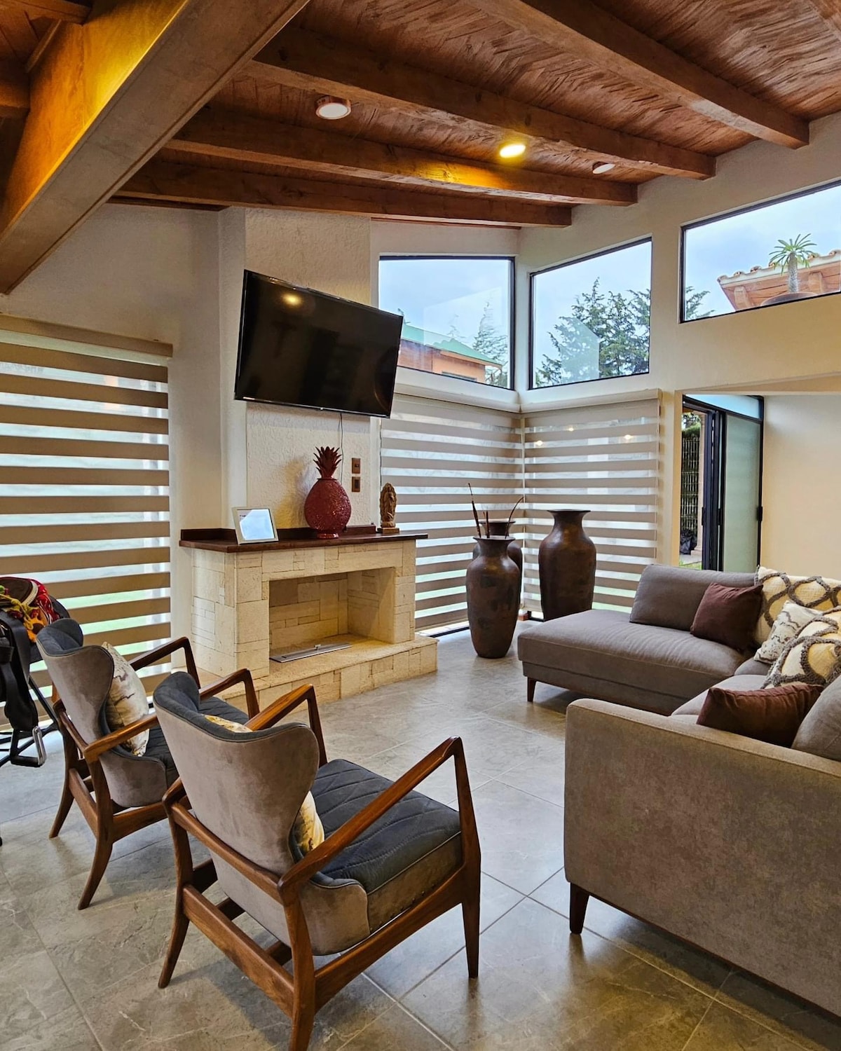 Beautiful home with all amenities, very safe area within a short walk of downtown, plaza, and all main attractions, fully furnished, indoor parking for 3 vehicles, full kitchen, two fireplaces, patio, terrace, soaking tub, boardgames, washer and drier, 4 smart TVs and fast Wifi! Several convenience store in neighborhood. House hosts up to 9 guest. However, there is an adjacent studio that host up to 5 more, which can also be booked. Personal car in property.