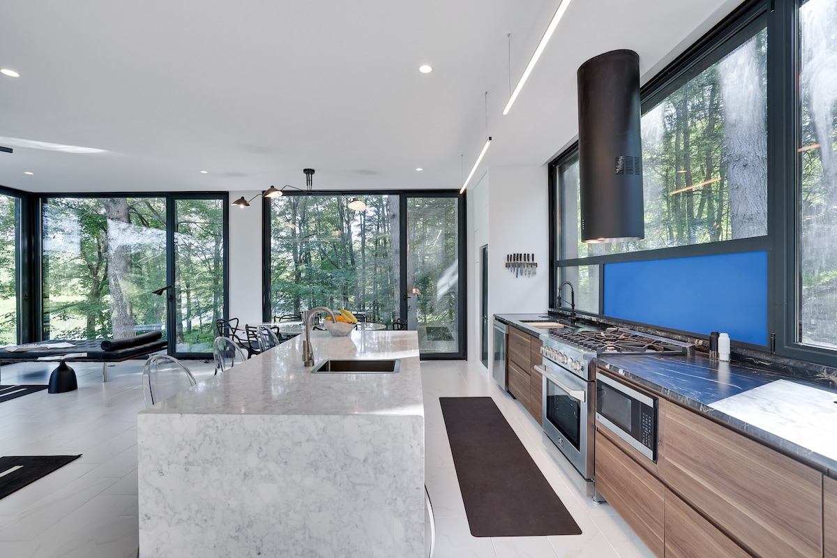 Nestled in 5 acres of serene forest blanketed with Mountain Laurels is this modern cabin with all the amenities you need to relax and unwind. Just minutes from downtown Hamlet of Narrowsburg and the Delaware River there is so much to see and do here. You could also stay at home and enjoy a meal on the spacious private deck, explore the property, bird watch, or let your worries melt away in the sauna.