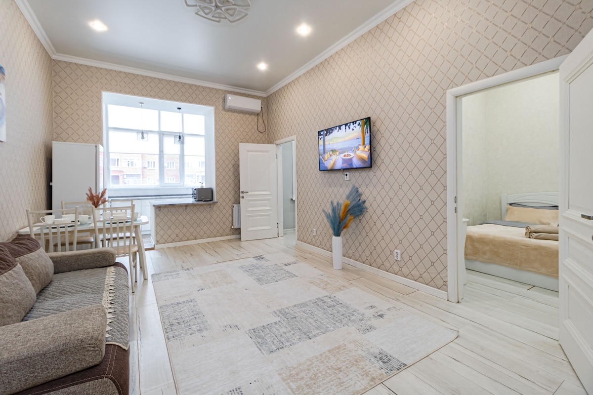 Enjoy a stylish vacation in the heart of the city. The apartment is in a new building on 131/1 Baizakov Street. • PHOTOS 100% MATCH THE APARTMENTS • Perfectly clean bedding. • The apartment has all the appliances: electric stove, fridge, smart TV (YouTube, free movies and TV shows), free internet, Wi-Fi. • All the dishes are included. (everything you need for your stay) • High-speed Wi-Fi internet up to 500 Mbps • A full package of reporting documents for business travelers