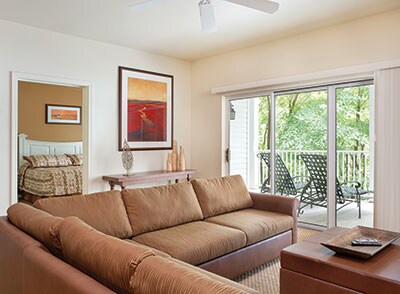 Two Bedroom: King in master, twins in second bedroom, queen murphy bed in living area. Two Bedroom - Special Needs: King in master, twins in second bedroom, queen murphy bed in living area. Roll under sink, no roll-in Shower. Maximum occupancy 6.