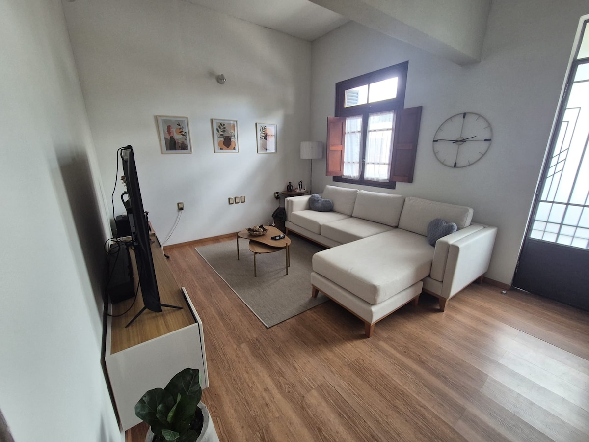 Enjoy a relaxing and warm stay in this new and elegant house in a very safe downtown area. The large windows overlooking the street allow it to be very bright and ventilated, and the private covered parking is complimentary. You'll find restaurants, supermarkets, and whatever you need very close to this place