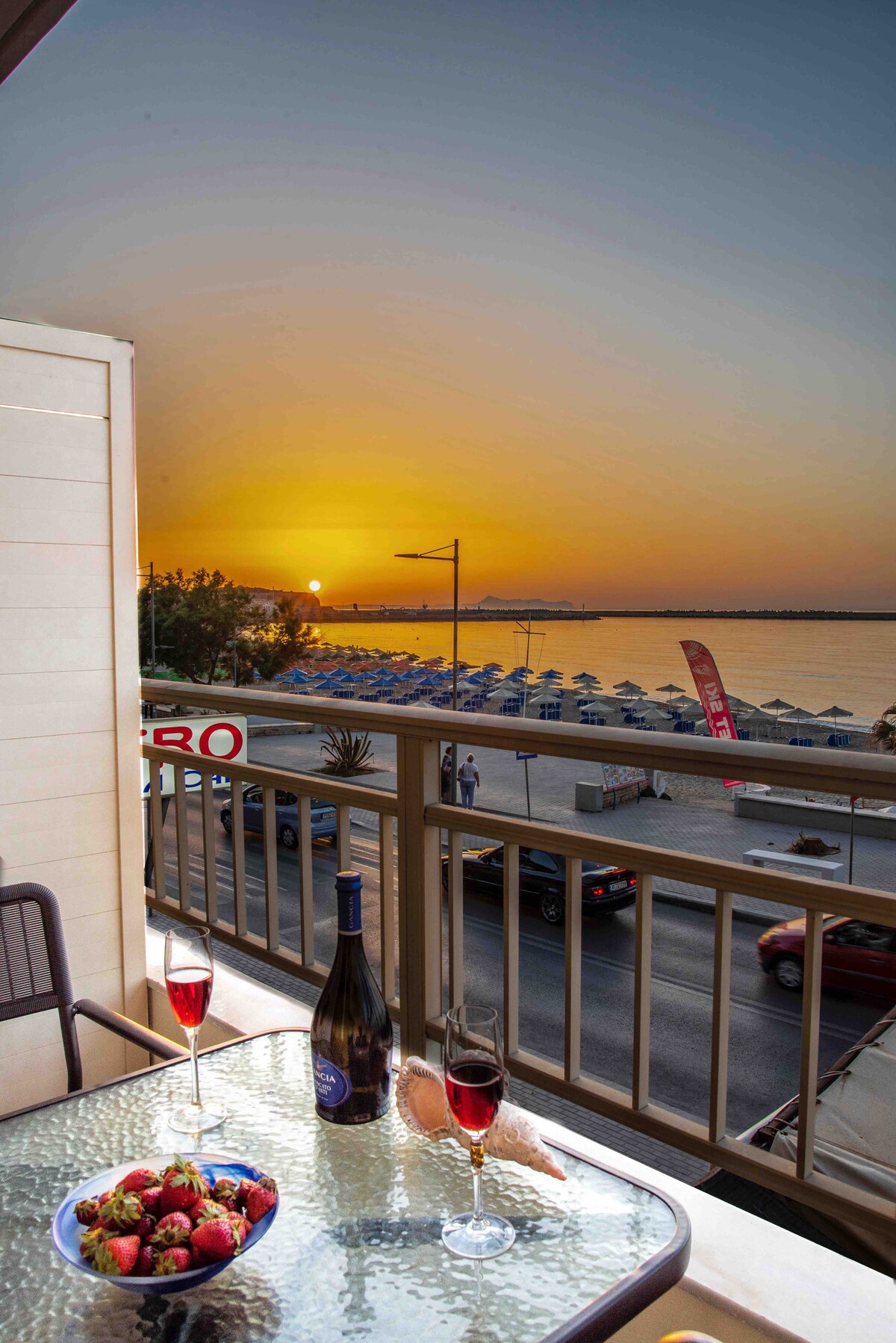 Beachfront apartment 71 m2 with a balcony of 20 m2. Two bedrooms, both facing the beach. Located in the city (surrounded by supermarkets, restaurants, shops etc) in the middle of a 2.900 m seaside road, ideal for walks and bicycle rides. Everything you may need (banks, children's playgrounds, general hospital etc) is within a radius of 1.500 m. Ideal for families with children. Car not necessary, unless you would like to use the apartment as a base to explore Crete.