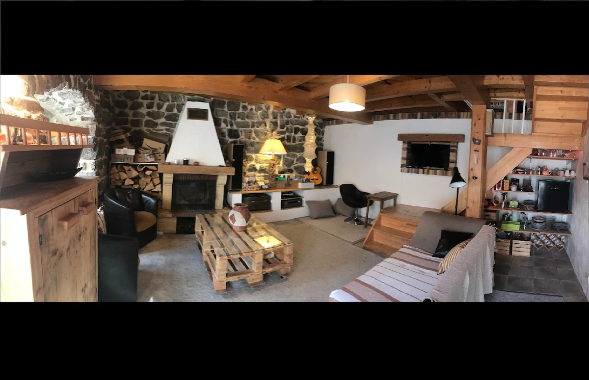 Besoin de déconnecter dans la nature, de confort douillet au coin du feu ? Cette ancienne petite chaumière en pierre et bois, rustique et cosy est faite pour vous ! Le bain nordique jacuzzi privatif et le sauna panoramique est à votre disposition tout au long de votre séjour. Avec sa cheminée, sa terrasse de lauzes, son calme : l'endroit idéal pour faire une vraie pause été comme hiver. Cocooning en amoureux, activités nature en forêt et sur les plateaux auvergnats ! Time to relax !