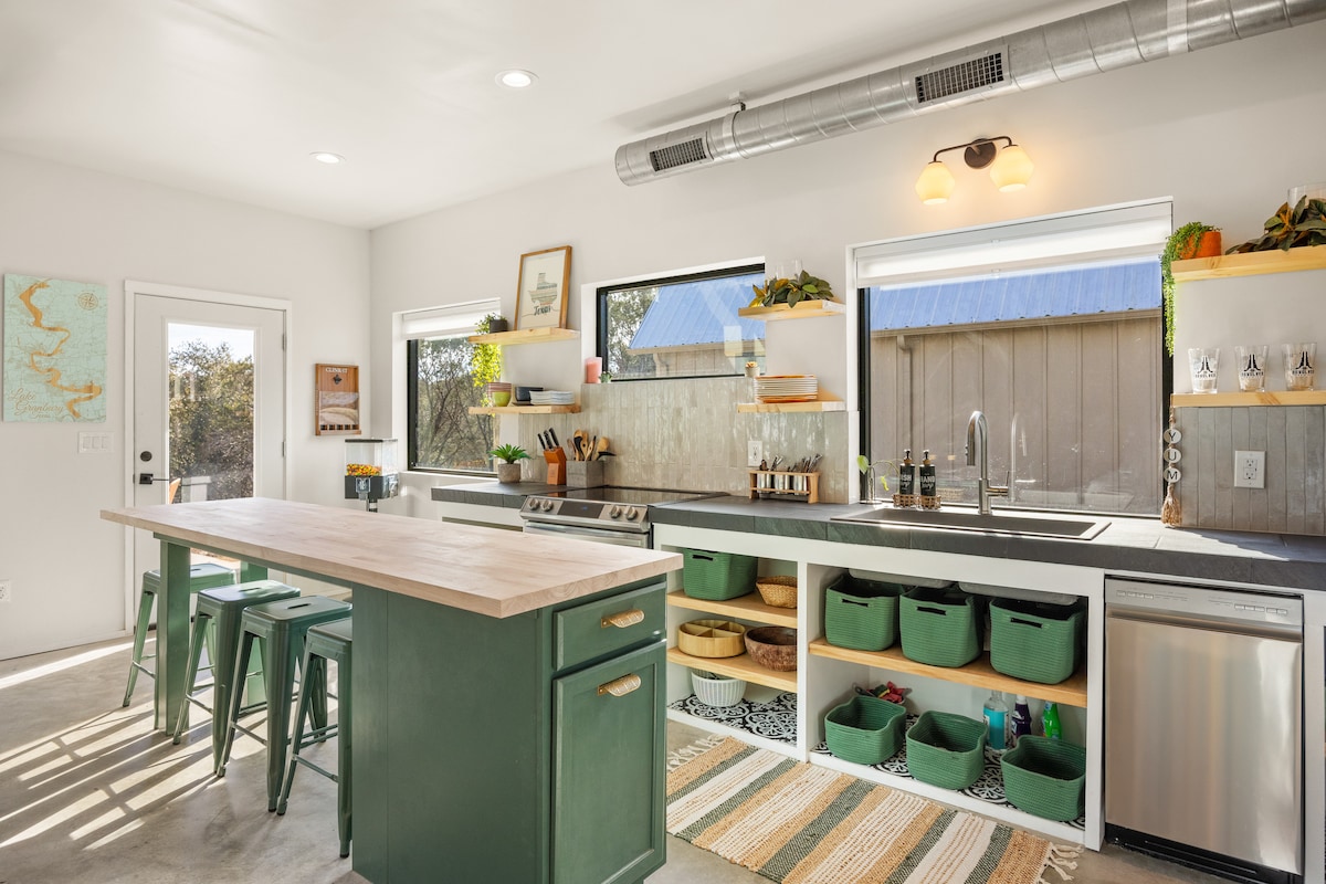 This charming little cottage is new construction, designed in the “industrial farmhouse chic” style. It’s the perfect place for a romantic getaway or a relaxing country adventure. Take in the wooded views from the screened-in back porch, walk down to the lake, or enjoy a day out in downtown Granbury! If you're lucky you may even see the neighborhood road runner. He loves to use our back porch as a hiding spot!We’d love to have you, so come stay a while.