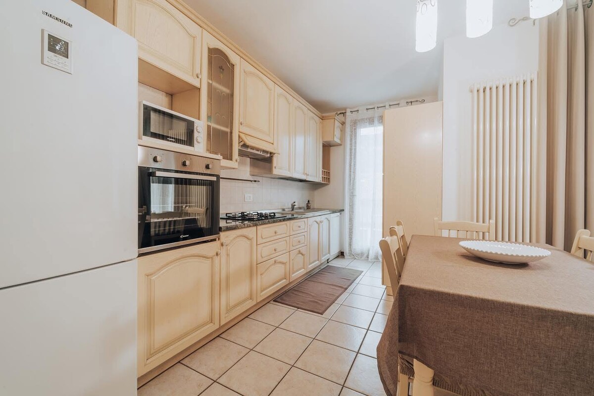 Delightful ground floor apartment with elegant independent entrance, living room and private indoor parking. It has a master bedroom with a private bathroom and a large kitchen. Centrally located in a quiet area, close to middle schools, sports centers, and a stadium (speedway track), complete with every comfort and a garden available. Outdoor safe. TV in every room, high-speed fiber-optic Wi-Fi, washing machine, and dryer.