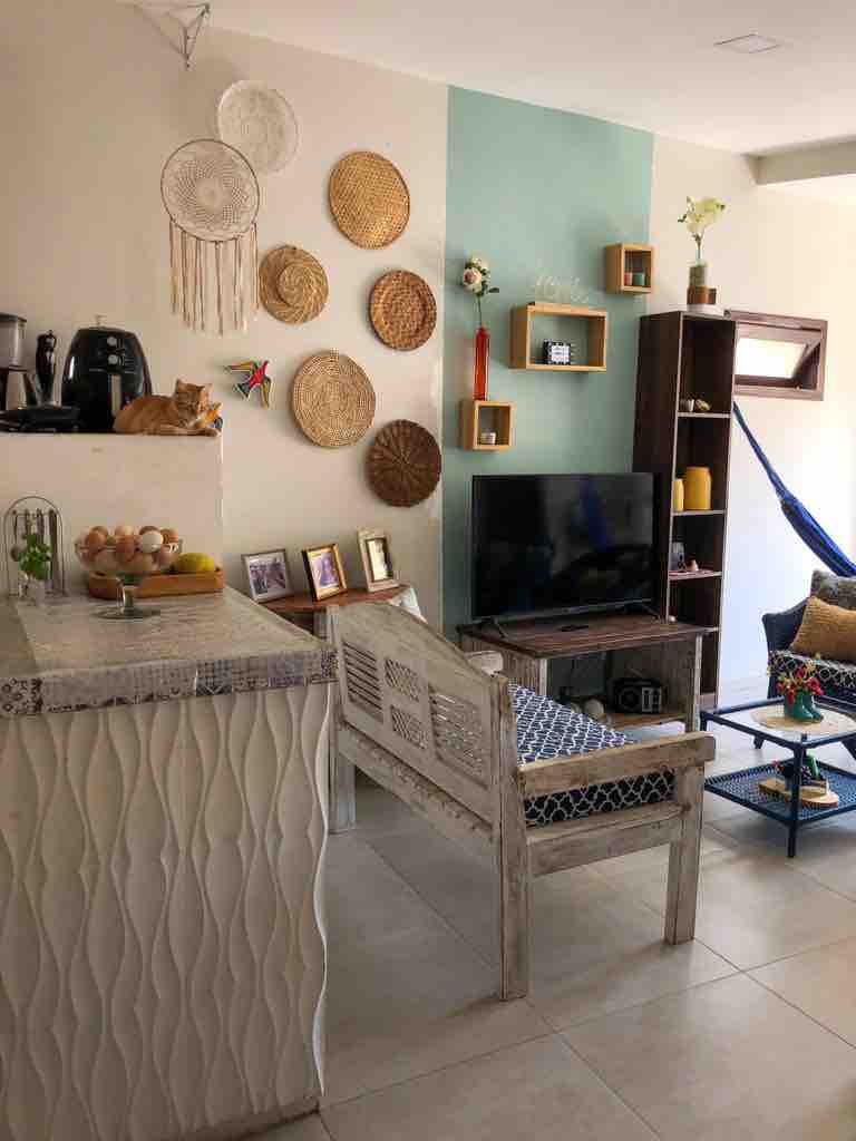 Vila Amarela is a mini condominium with 5 houses. All houses accommodate up to 4 people. There are 2 bedrooms: 1 full bed and another with 2 single beds. The kitchen is complete with a refrigerator, stove, blender, sandwich maker and all the utensils you need to prepare your meals. The leisure area with swimming pool and barbecue is shared with all the houses. You are renting an equipped house, unlike a bed and breakfast or hotel where you only rent a room. Feel at home at Pipa!
