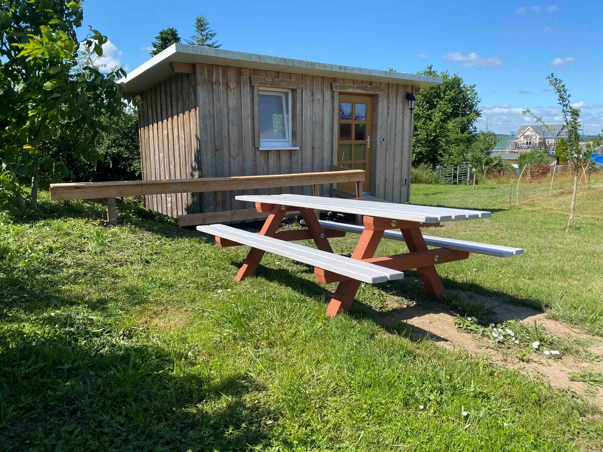 If you are looking for absolute nature and idyll, you have come to the right place. In the sleeping car there is an extra large bed with a sleeping area of 2.50 x 2.0 m. The trailer has an electrical connection. Bed linen can be rented for €10 per person on request. The (contemporary) bathroom (toilet/shower) is located in the extra entrance of the adjacent residential building about 110 meters away. The bathroom is also used by the other “campers.”