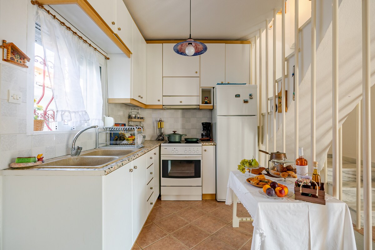 Το σπίτι είναι μεζονέτα 3 ορόφων, στον πρώτο όροφο είναι το καθιστικό με την κουζίνα (εξοπλισμένη με ηλεκτρικο φούρνο,ψυγείο,βραστηρα,καφετιέρα,τοστιερα και μαγειρικά σκεύη) και το WC.Στον επάνω όροφο είναι τα 3 υπνοδωμάτια και το μπανιο.Στο ημιυπόγειο υπαρχει καθιστικό.Επίσης έχει τρία μπαλκόνια,δύο στην πρόσοψη του σπιτιού και ένα στην πίσω πλευρά.Παρέχονται πετσέτες και σεντόνια,σαμπουάν, πιστολάκι μαλλιών,ηλεκτρικό σίδερο. Απέχει από την θάλασσα 600 μέτρα και απο την πλατεία 150 μέτρα.