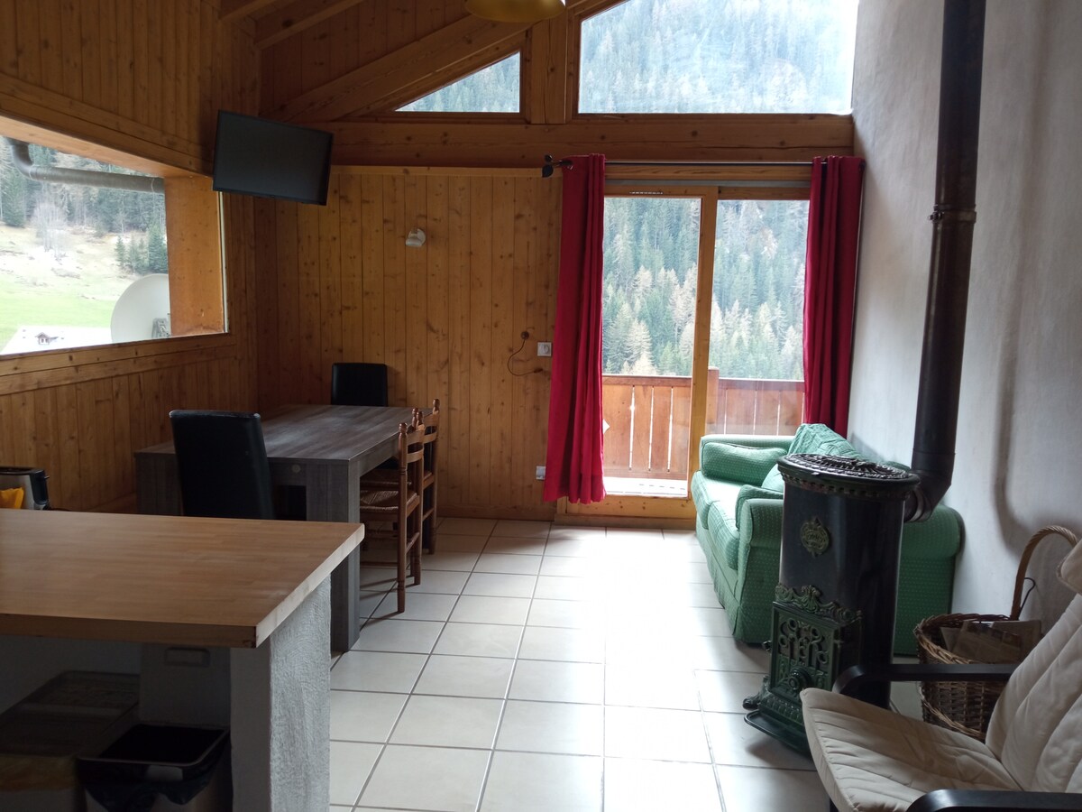 Enjoy this beautiful, warm, ultra-comfortable apartment completely renovated in a beautiful mountain chalet. Located in the village of Nancroix, you will enjoy the wild and natural side of the valley floor and enjoy breathtaking views of the valley mountains. Composed of a large living-dining room, fully equipped kitchen and warm bedrooms. Come and recharge your batteries in this place where calm and tranquility will accompany you throughout your stay.