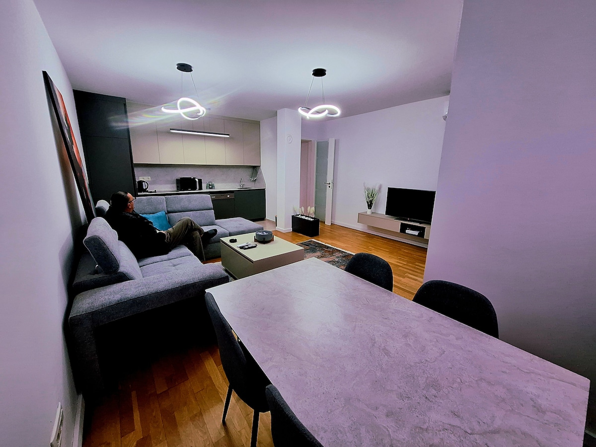Note WHEN PRE-BOOKING WITH US, PLEASE SEND A MESSAGE WITH SOME INFORMATION ABOUT YOU AND YOUR TRAVEL COMPANIONS. Welcome to our stylish apartment with breathtaking mountain and city views. The condo is in the heart of Peja with just 500m away from the city centre and less than 10km away from Rugova Canyon. Perfectly located for urban and mountain exploration, our condo promises a memorable stay amidst city lights and modern comforts. Experience what Peja has to offer and share it with the world!