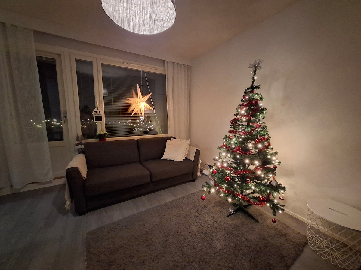 Enjoy a relaxing stay in this cozy two-room apartment with private sauna, just minutes from the city center yet in a quiet area. Sleep well in the flexible bedroom (double or two singles) and use the sofa bed for extra guests. The home is fully equipped with modern comforts: dishwasher, washing machine, dryer, microwave, coffee/water kettles, toaster and free WiFi. Warm floors, sauna and key box add convenience. Private parking space with heating outlet right next to the apartment is included.