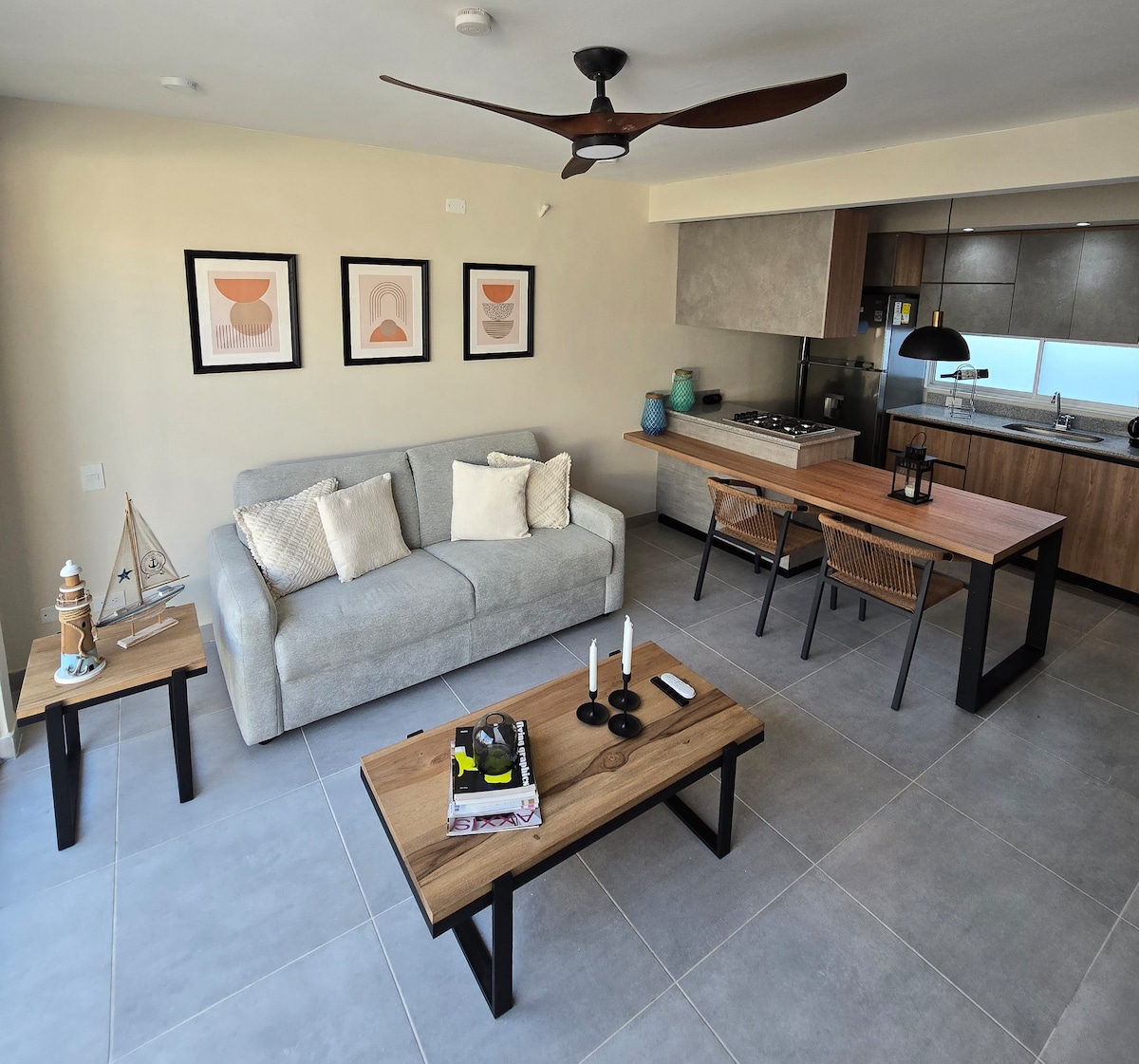 The apartment complex is in Hacienda Peñaliza. It has a living room, bar table, kitchenette, 2 air-conditioned bedrooms, 1 sofa bed, 2 bathrooms, and a balcony. The gated community has common areas (micro-soccer fields, 2 swimming pools for adults and one for children, children's water park, communal parking lots, a gym, billiards, ping pong, and green areas. The apartment is located on the 3rd floor The towers have an elevator ☑️