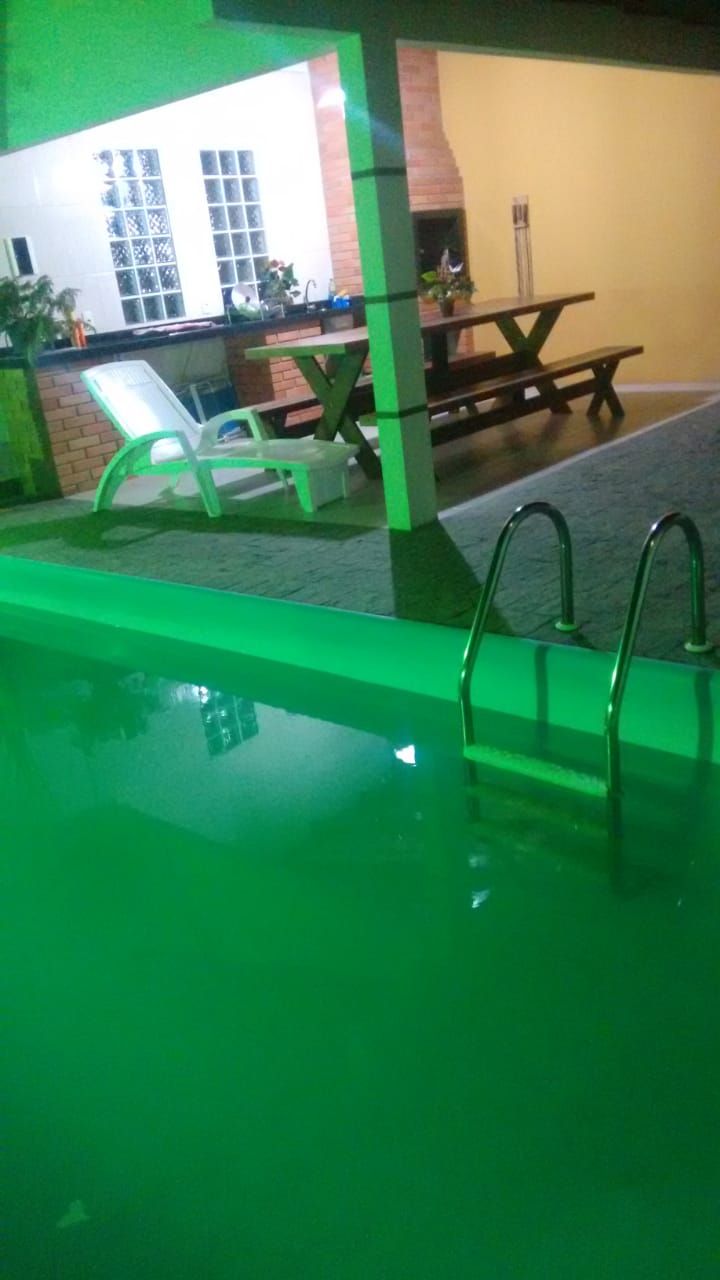 House in Armação - Penha-sc fully walled house with electronic gate. The house has 3 bedrooms, all with air-conditioning, 3 full beds and 3 bunk beds as desired. 3 Bathrooms Large leisure area with barbecue, 6x3 swimming pool with a depth of 1.40, covered garage for 3 cars and space for another 2 cars on the property TV room with Netflix Close to the market, bakery and etc... It is 400 m from the beach and 300 m from Beto Carrero World park.