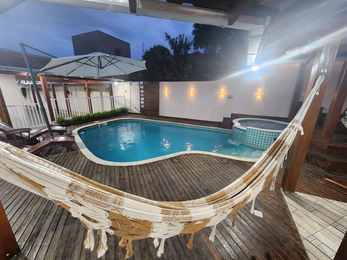 Excellent house to accommodate your family during your vacation. Located on the beach of Itapocoroy, 100 meters from the beach and close to Beto Carrero World Park. Large spaces, leisure area with barbecue, swimming pool, garage for up to 4 cars, 3 bedrooms, 2 bathrooms with shower. Close to restaurants, markets, shops and live music. Located 20 minutes from Navegantes International Airport (NVT) and the Region (Itajaí and Balneário Camboriú). We'll be happy to welcome you!