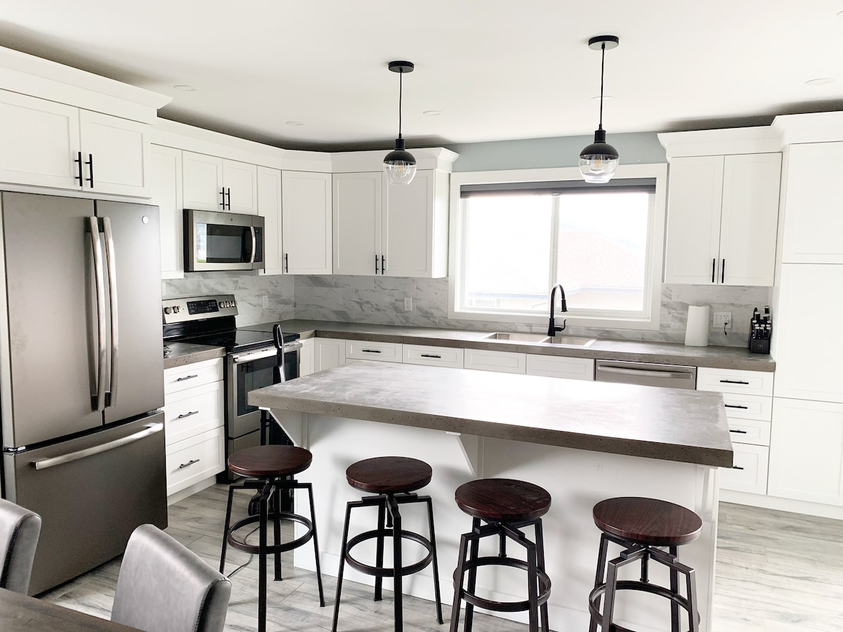 Just steps to Okanagan Lake!!! We're proud to offer you a newly renovated space with a light beachy vibe, enjoy the quartz countertops & stainless steel appliances. There's a half bath down & a double vanity up in the main bath. The house offers 2 master bedrooms both with access to the balcony overlooking a new generous deck, perfect for lounging or enjoying a BBQ. You'll be pleased to find brand new furniture & fresh modern linens. Come & enjoy a relaxing atmosphere both inside and outside.