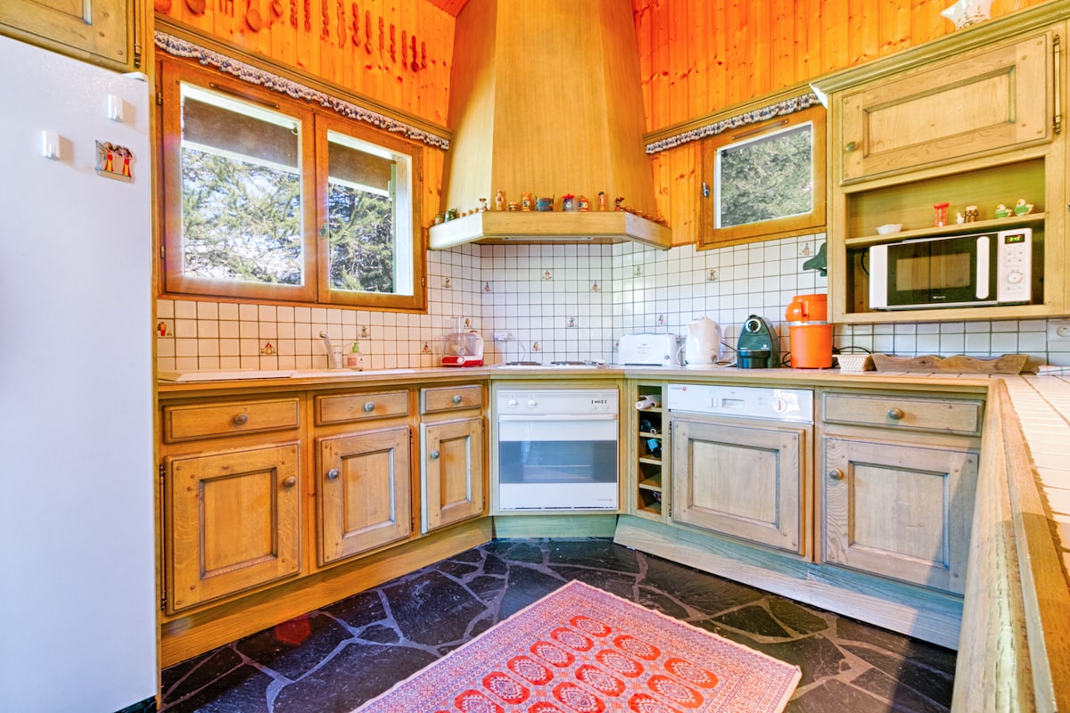 Large natural terrain, tranquility & calm make the charm of this pleasant and bright new chalet in the middle of the mountain. Independent chalet including 1 entrance with closets. Living room, dining area & sitting area. Open kitchen. Separate toilet with handwasher. Upstairs 1 bedroom (1 bed 2 pers. & 1 bed 1 pers.), 1 bedroom (2 beds 1 pers.). Bathroom with toilet. Terrace (45 m² with barbecue and deckchairs). Land (1500 m²).