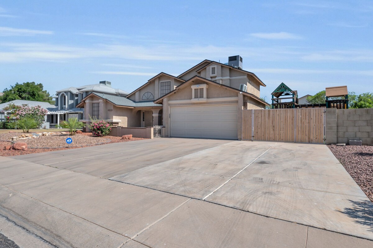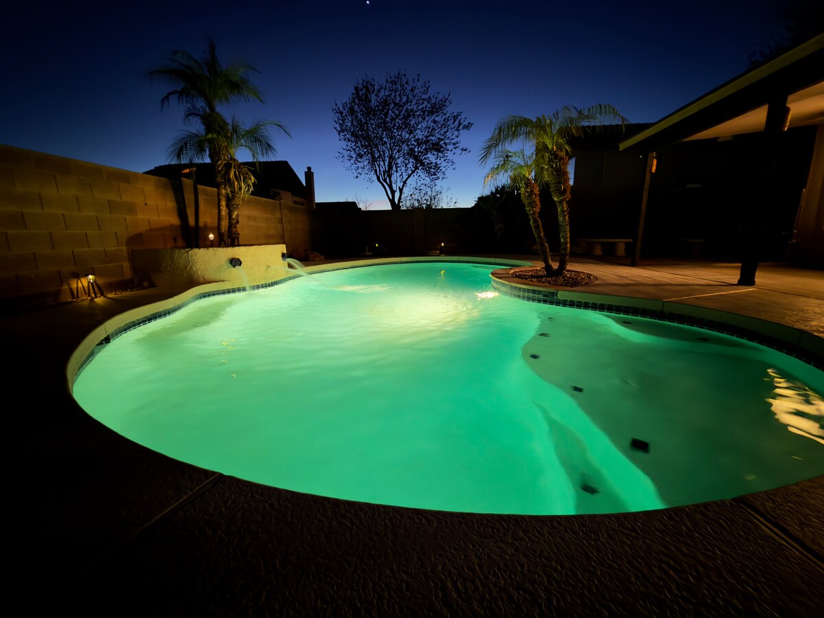Feel at home in this bright, cozy retreat with everything you need. Just 11 miles to State Farm Stadium and right off the 101. Enjoy the tranquil lake views while enjoying your coffee and listening to the chirping birds. Have cocktails while watching stunning sunsets. Relax outside grilling, unwinding by the fire pit, or swimming in the pool. POOL/SPA heat available for a fee. Minutes from top restaurants, golf, and shopping. Explore Arizona! 👉 “Book your stay now!” *Lake is for viewing only.