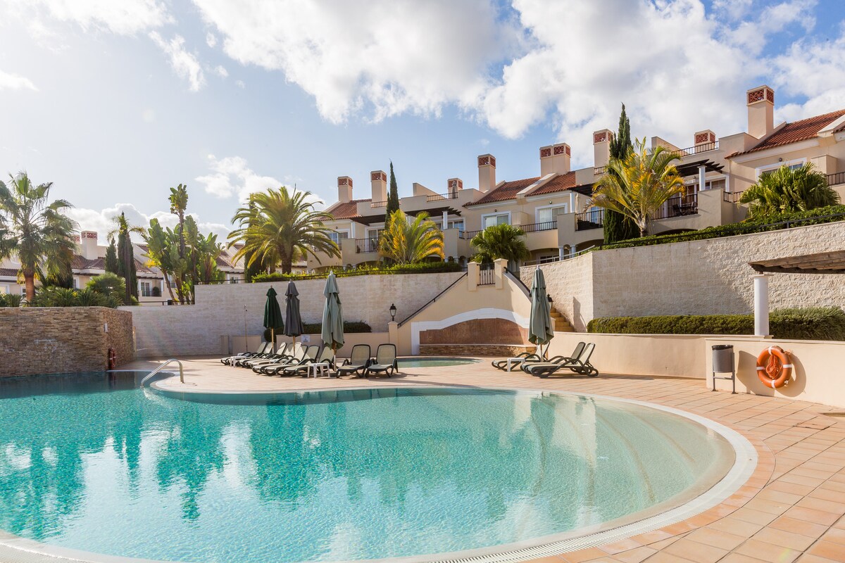 1 bedroom apartment in the Herdade dos Salgados 5 star resort, ideal for couples with up to 1 children looking for comfortable and relaxed holidays close to the nature, beach and golf. The apartment is on the second floor, has a large balcony (17 m2), a huge living room (44 m2), excellent view over the 7 swimming pools and it is in a resort with extensive green areas (750 palm trees and 2,500 olive trees). The resort has direct connections to Salgados Golf and to the beach.