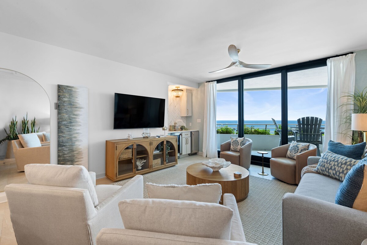 Bring the whole family together in this beautifully designed & thoughfull laid out beachfront condo. Offering spectacular views, multiple generous living areas & comfort for every generation. With room to gather & space to unwind, this home is perfect for grandparents, parents & kids or friend groups to share unforgettable beach days to enjoy together without feeling crowded. With panoramic views from floor-to-ceiling windows, this spacious condo offers breathtaking scenery sunrise to sunset.