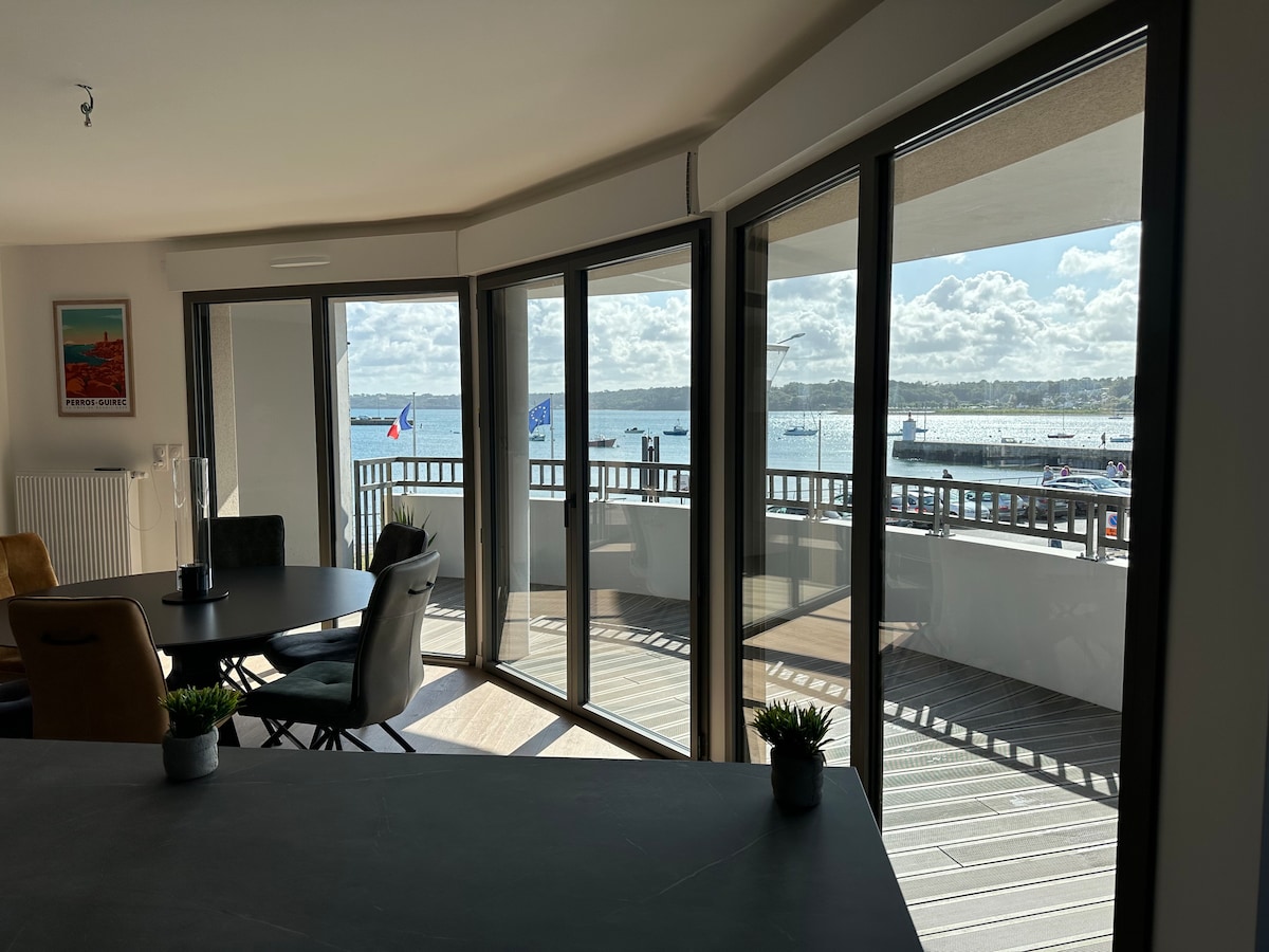 Wide angle on the sea for this exceptional apartment with breathtaking views located on the 1st floor of a former seaside hotel overlooking the beach of Trestraou and the Archipelago of the 7 islands. A little paradise under the palm trees! Private access to the beach and direct to the coastal path If your dates are already reserved, we offer you an apartment on the 5th floor / le5emecielperros on this site Please exchange with the "contact the host" tab for more info A setting out of the world!