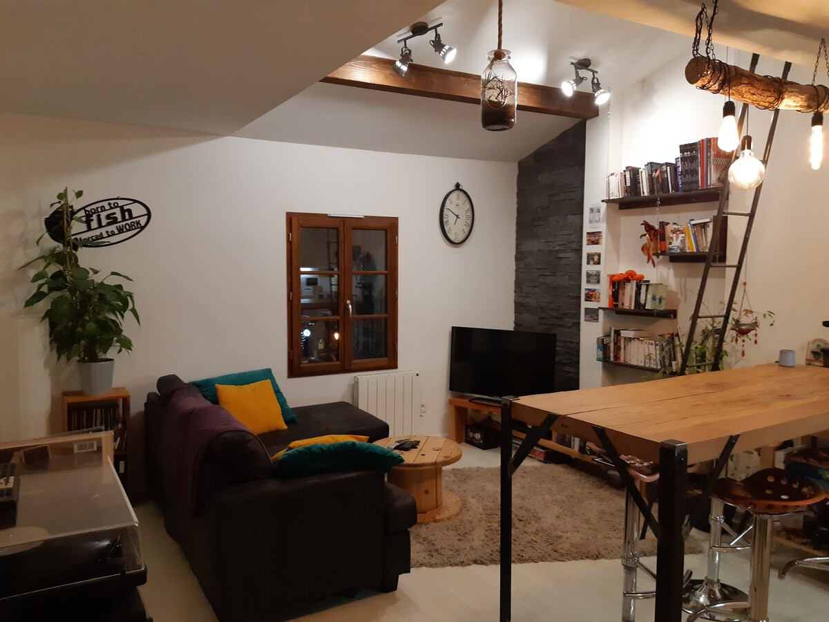 Come and discover the "CHEZ MARIETTE" studio: this unique 25 m2 accommodation between LAKES and MOUNTAINS, in a completely renovated farm, quiet and perfectly located 30 minutes from the SWISS border. 🚗 FREE PARKING on site 🧑🧑🧒🧒 Capacity: 2 people. 📍Location: In a quiet town near Switzerland, in the heart of Haute Savoie ✈️ Airport access: 35 min by car ⛰️ Lakes and resort less than an hour's drive away Annecy within 30 min