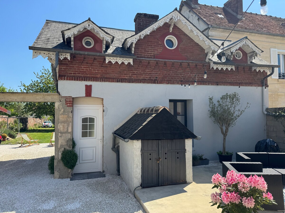Our small house located at the back of our main residence will seduce you with its warmth, calm and brightness. It has a fully equipped kitchen and a bedroom with a 160 bed upstairs. The staircase is rather narrow and not suitable for children. You will have access to the private terrace and the back garden if the weather is nice. Parking is free on the street in front of the accommodation.