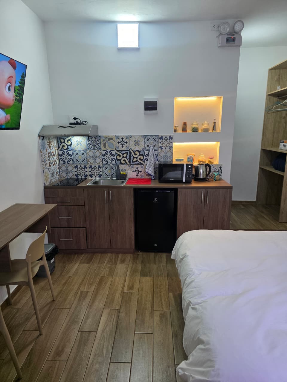 Enjoy your stay in the White City in a comfortable and bright studio just a 15-minute walk from the historic center. Ideal for enjoying Arequipa's sunny days, with views of the volcanoes from the balcony. The studio is equipped with all basic appliances. It includes a private bathroom, 24-hour hot water, and internet connection. The building features an elevator, an internal patio, and a portal with video surveillance.