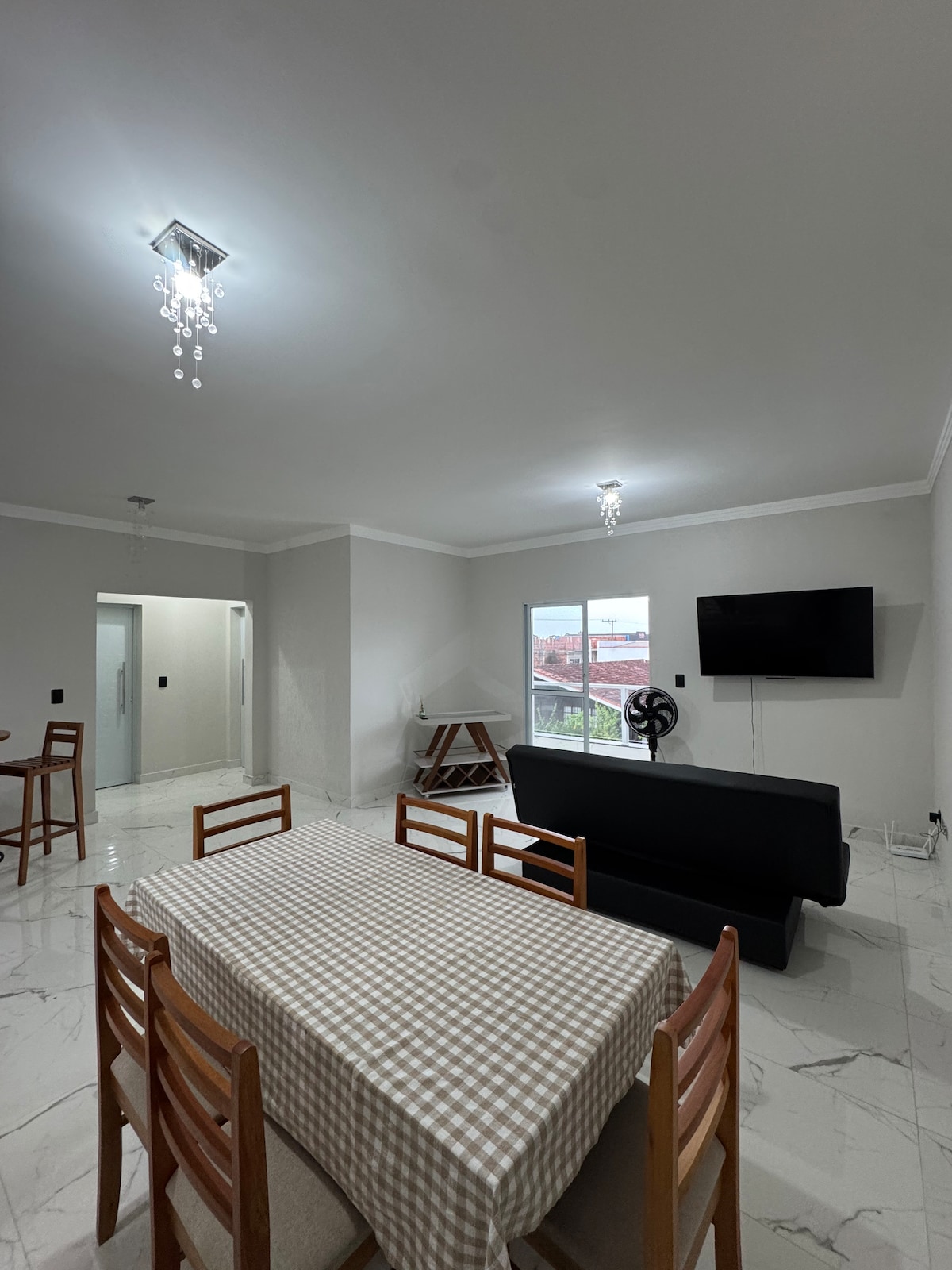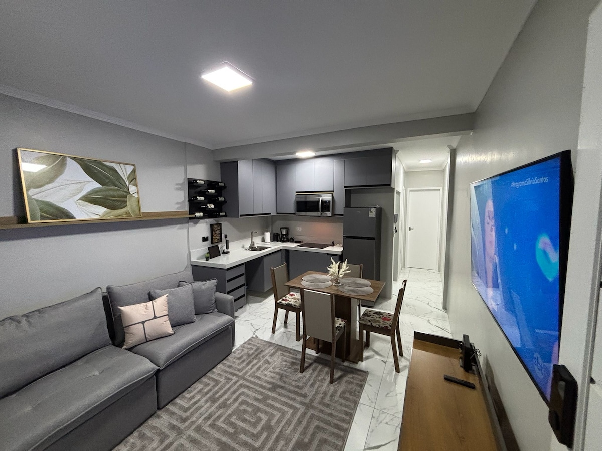Complete, new, and with AC! Ideal for families! Just a 5-minute drive from the beach and downtown, and approximately 12 minutes walking to the beach. Modern apartment with air conditioning in both the living room and bedroom. Fully equipped American kitchen with induction stove, microwave, and coffee maker. Accommodates up to 4 people: 1 double bed and 1 sofa bed. Full amenities: fiber Wi-Fi internet, Smart TV, workspace, and parking available. Access with electronic lock.