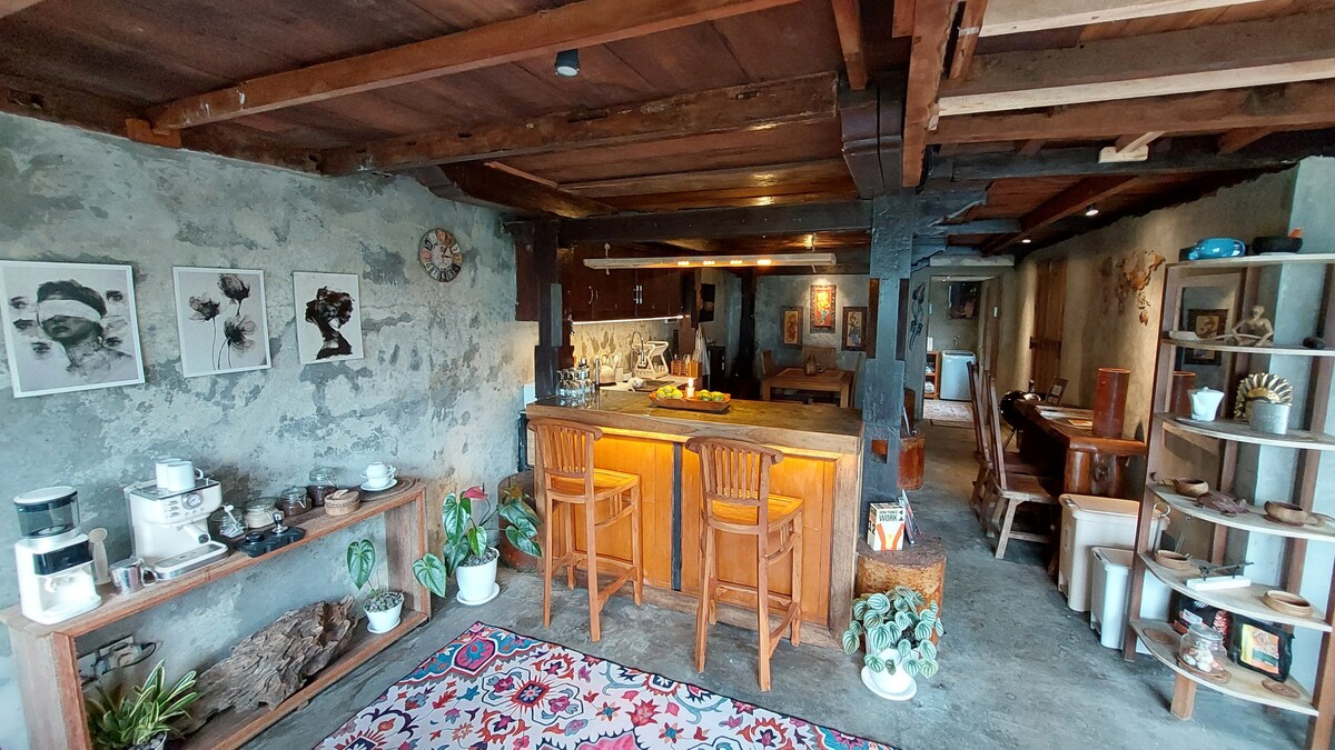 The house has rustic and industrial mood. The wall is a cement expose look. The iron glass doors and windows to ensure the jungle views seen from most part of the house. A cool and rustic lighting element are nicely installed. The furniture are a mainly made of recycled teakwood. A big open space for kitchen, dining and living. Daily breakfast is included. A good size infinity swimming pool overlooking beautiful jungle view. Chillout at this unique and tranquil jungle getaway.