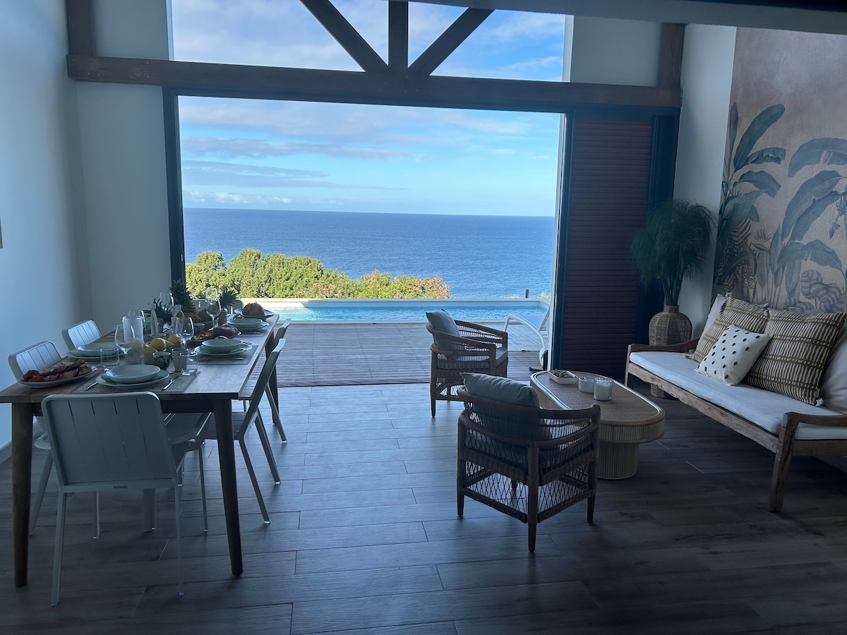 This new place is special. Located in the south of the island. Just above Grande Anse Beach. With stunning views. This luxurious villa has been carefully decorated by its architect. You will be lulled by the sound of the waves. 120 m² with three air-conditioned bedrooms, 2 bathrooms, a living area of 40 m² and a magnificent 20 m veranda. 260 m² garden and heated pool with ocean views. And the little extra for a moment of games with friends: the petanque court 🤩