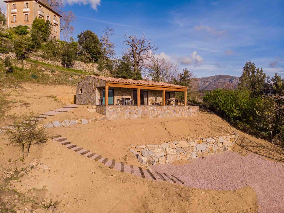 Charming stone residence in the region entirely built by the owner, respectful of the environment, between the sea, mountains and swimming pool (5-star rating). 5 minutes from the famous Gorges de l'Asco, river, waterfalls. 25 minutes from the most beautiful beaches of Balagne, Ostriconi, Lozari. In an unspoiled site, in absolute calm with a superb view. This place is perfect for a romantic getaway with private access to the owners' infinity pool. Fiber internet