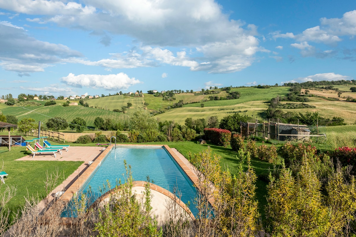 Casa Antonio is a private villa with pool in Le Marche region, in the small borgo of Mogliano. Surrounded by green hilly scenery, with a fine view over the Sibillini mountains, it is the perfect combination of peace and simplicity, the ideal place to savour the traditional flavours of Le Marche countryside, far from the frenetic rhythms of the city.