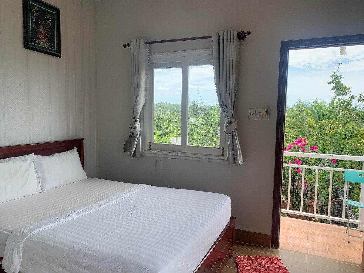 If ever you are looking for privacy or seek for the feeling of being at home while on vacation, Matrusaden will offer you a deep dive into the daily life of locals, in southern Vietnam. With a hint of cosiness Perfectly located, at the right distance from the main road, away from the annoyances of mass tourism, you'll appreciate the quietness, the privacy, the kindness of warm hearted people. The room is large enough with private bathroom. You can enjoy the sunrise and sunset from the balcony.