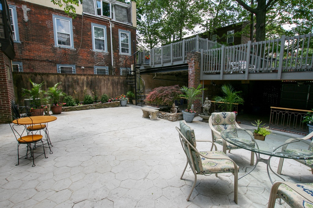 This spacious apartment in Bella Vista/Washington Sq. is central and convenient with free on-site parking. 5 min. walk to the subway then direct to the stadiums. Spread out with large living, dining, and kitchen space. Wide steps, hallways, and space are easily navigable. The large outdoor space, shared with two other units, provides a peaceful respite within the city. Historic sites, theater district, dining all within walking. Conveniences of Whole Foods, Starbucks, at the corner.