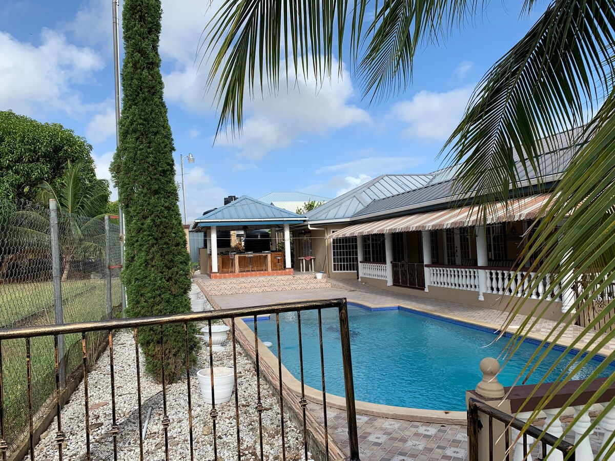 Nightlife, shopping, restaurants are 10 minutes away at South Park Mall. You’ll love the Overlook convenient location, serene ambiance and relaxing views. Perched above St. Joseph village the Overlook boasts of tropical breezes and breath-taking panoramic views from multiple locations (kitchen, master bd, living room, expansive covered porches). Ideal for Trinidadians who live abroad and are visiting with their family. Don't miss out on this exceptional accommodation-book with us now.