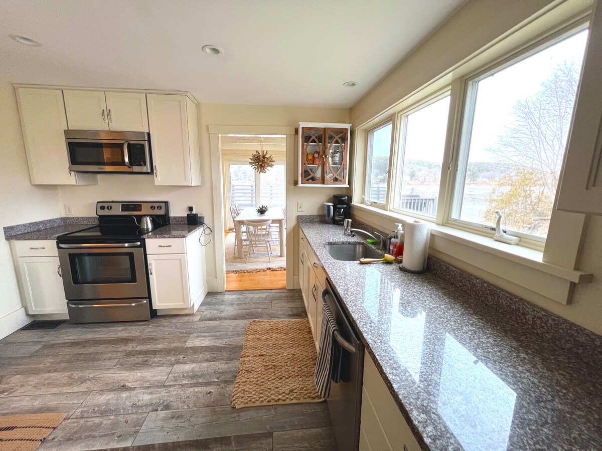 Freshly renovated inside and out, the cottage is your private Maine camp. Located on an acre and a half of wooded grounds, and surrounded by forest, the cottage feels secluded, but it’s only a mile to the restaurants, shops, and waterfront attractions of bustling Boothbay Harbor. With hiking trails in the Pine Tree Preserve that adjoins the property and the Lobster Cove Meadow Preserve a five minute walk up the road, you can also explore nature and enjoy the solitude of the woods.