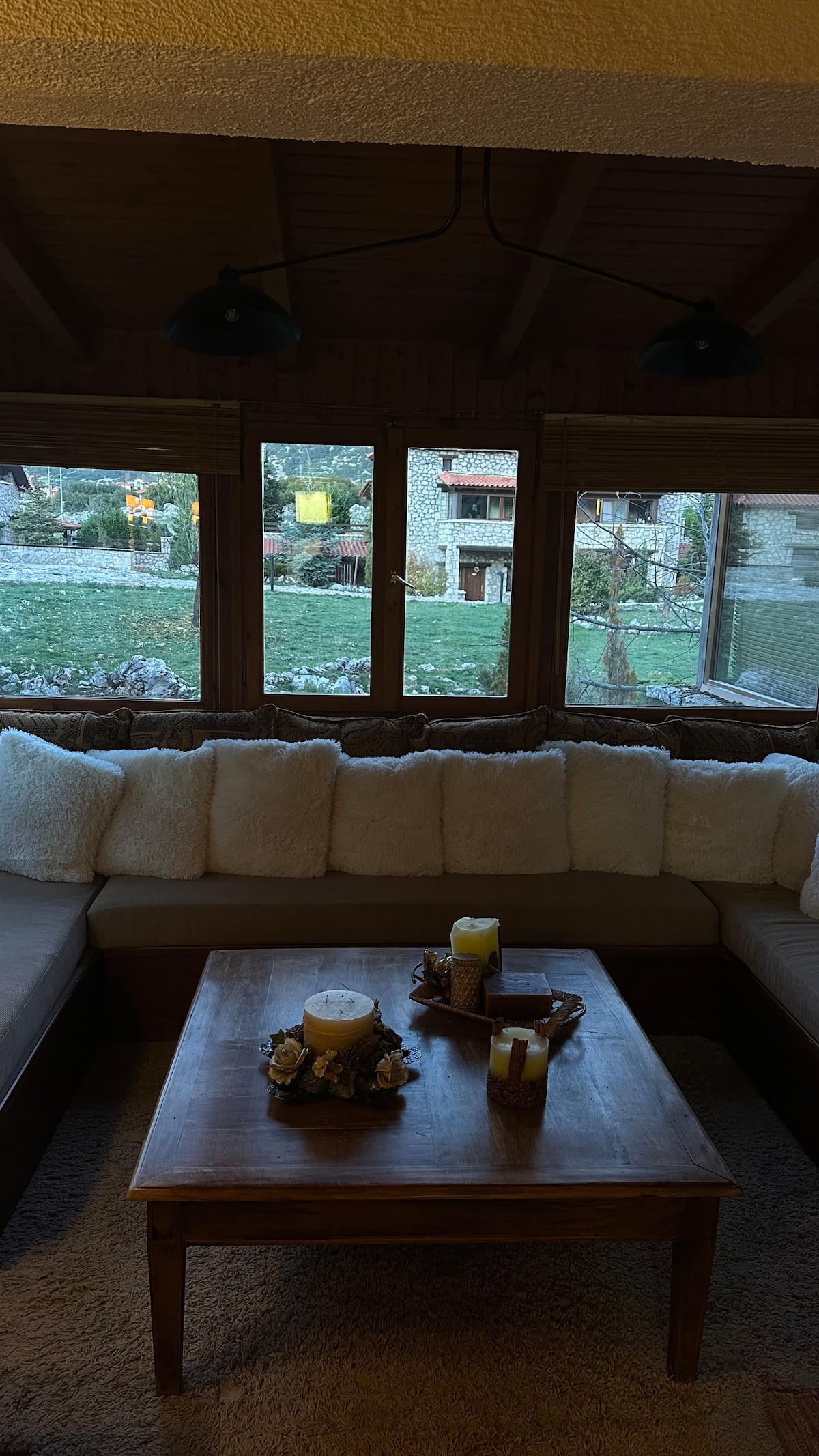 Set in the open mountain landscape of Livadi Arachovas, Anemos Mountain Villa is a spacious stone-built retreat designed for guests who value privacy, comfort, and authentic alpine living. Surrounded by nature and offering unobstructed views of Mount Parnassos, the villa blends traditional stone architecture with warm wooden elements and modern amenities - creating the perfect setting for relaxing mountain escapes, family getaways, and cozy gatherings by the fireplace.