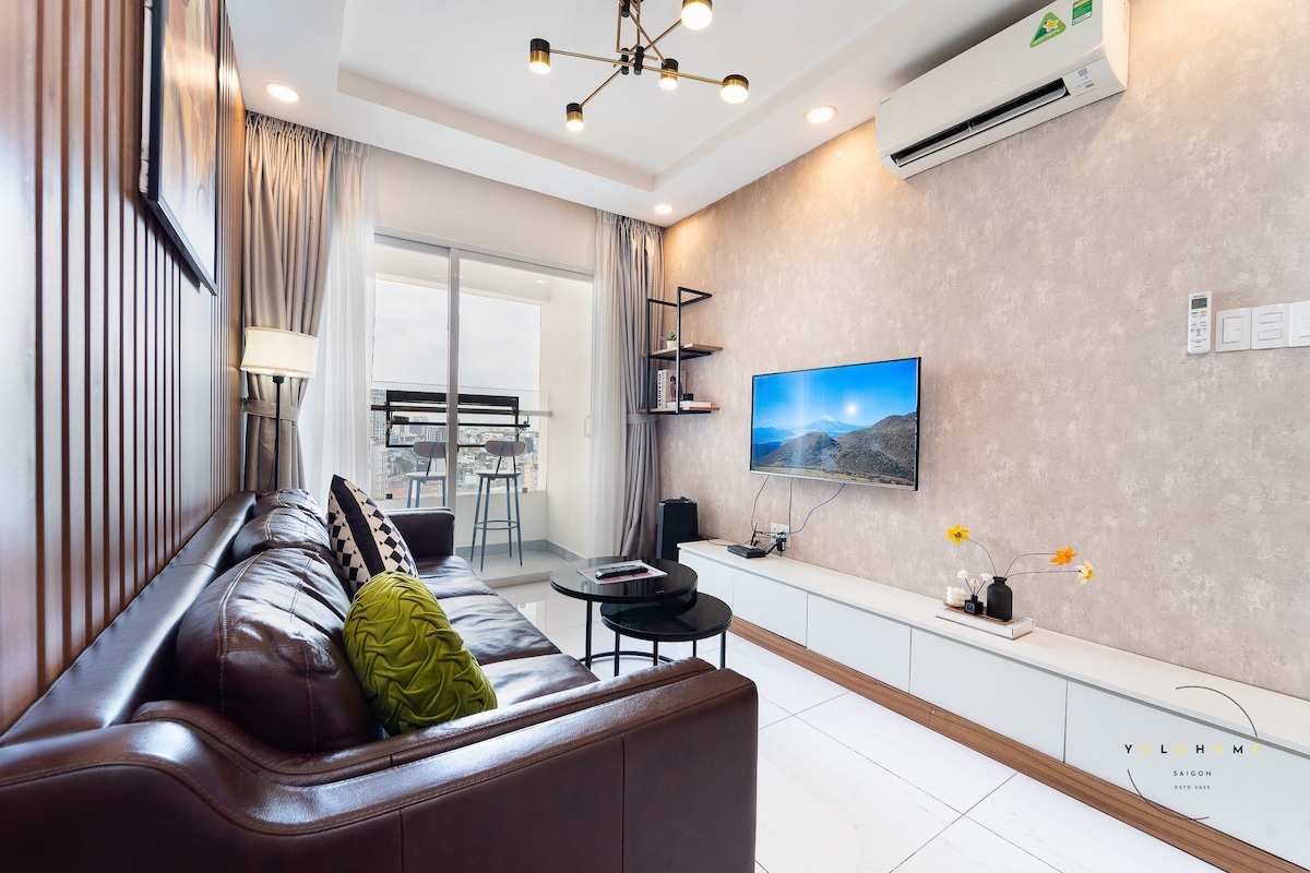 The apartment is suitable for guest and family combining business trip and vacation. It gives visitors the feeling of staying at an elegant hotel but enjoying a family-like atmosphere. - King bed 1.8 x2 meters wide and 1 Sofa bed 1.8x2 meters wide for family of 4 people. - 2 working tables, 1 piano, 58" TV with more than 100 free channels: Netflix, HBO, Max, Sports, - Cooking area, tea table + dining table, minibar, refrigerator, washing machine - Free swimming pool - 5 minutes to the airport