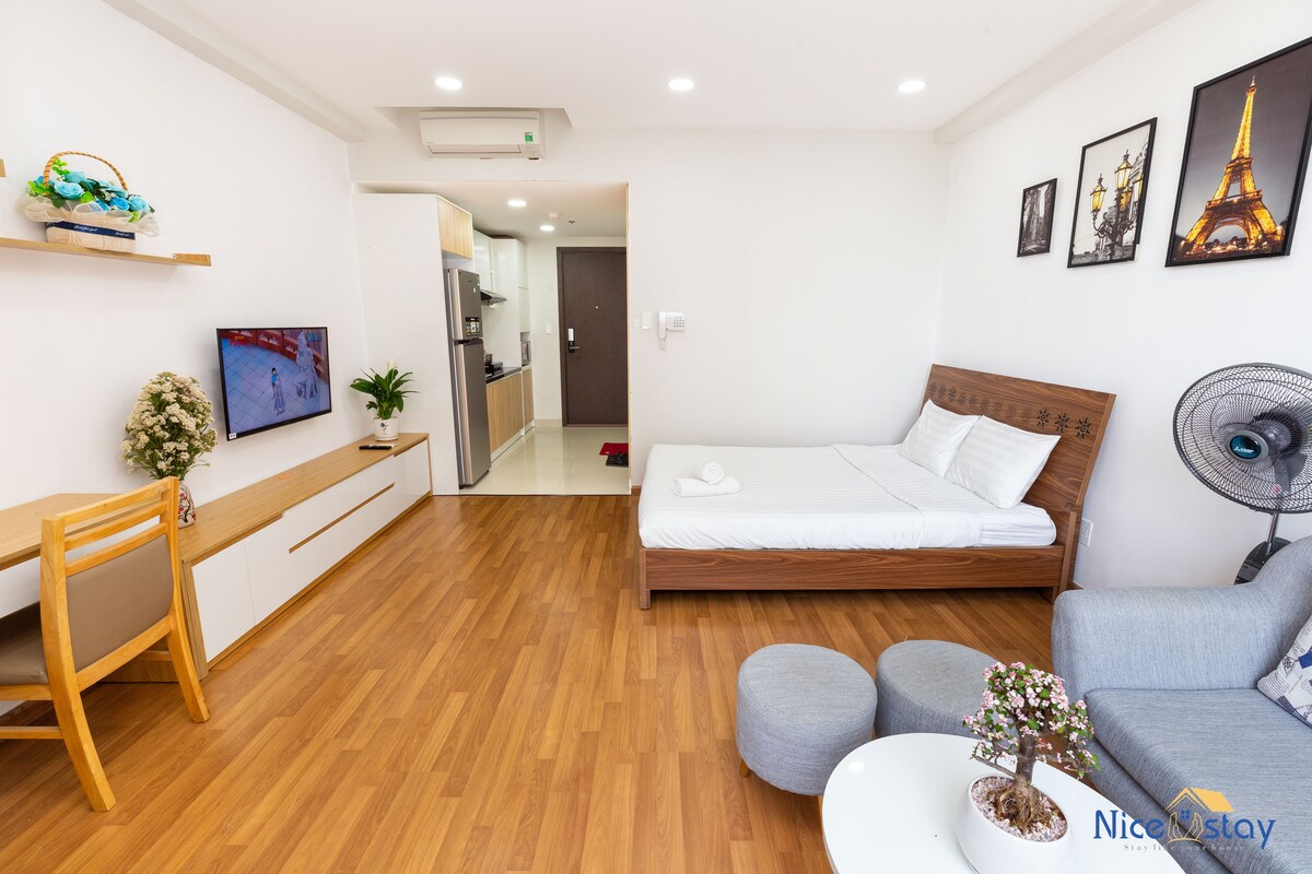 The apartment is suitable for guest and family combining business trip and vacation. It gives visitors the feeling of staying at an elegant hotel but enjoying a family-like atmosphere. - King bed 1.8 x2 meters wide and 1 Sofa bed 1.8x2 meters wide for family of 4 people. - 2 working tables, 1 piano, 58" TV with more than 100 free channels: Netflix, HBO, Max, Sports, - Cooking area, tea table + dining table, minibar, refrigerator, washing machine - Free swimming pool - 5 minutes to the airport