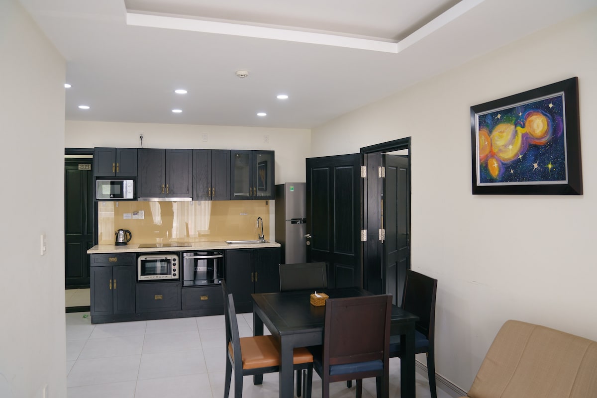 Từ Kosmos, bạn chỉ mất 2 phút đi bộ (200m) để ra biển Long Beach và hồ bơi – nơi lý tưởng để ngắm hoàng hôn đẹp nhất Phú Quốc. Căn hộ được trang bị đầy đủ nội thất hiện đại: 🚿 Toilet rộng rãi với máy giặt & bồn tắm tiện nghi. 🍳 Bếp riêng đầy đủ: tủ lạnh, lò vi sóng, lò nướng, máy rửa chén – sẵn sàng cho những bữa ăn tại gia. 🛋️ Không gian thoải mái, sạch sẽ, thích hợp cho cặp đôi, gia đình hoặc nhóm bạn. Vị trí gần trung tâm, gần trạm xe buýt miễn phí, chợ đêm, tiện nghi đầy đủ.
