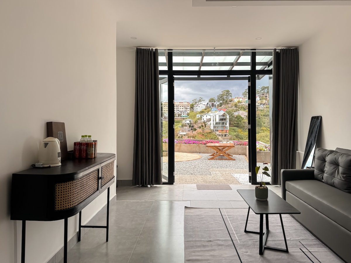 A 2-bedroom apartment with a view from the living room and bedroom to the super beautiful valley - Chubby house with spacious and peaceful space, will help you have a wonderful and memorable vacation. Where you can watch the sunrise with the birds singing, sometimes you can even watch the clouds in the room. The apartment has enough space for warm parties, you can chat with your loved ones over a cup of hot tea and watch the sunset in Da Lat in the cold weather.